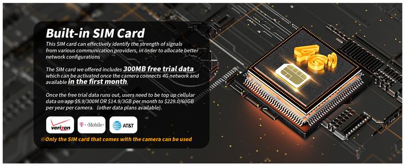 • Each Camera has one built-in Cellular card.