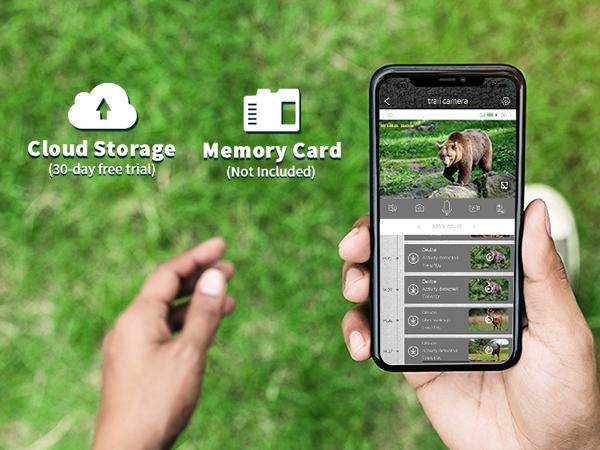 Cellular trail camera boasts an adjustable PIR sensor and a lightning-fast trigger speed of 0.2 seconds, ensuring accurate detection and swift capture of the essence in both photos and videos. Timely alerts are provided through the Ucon app. The photos and videos will be stored on an memory card (up to 128G, not included) or cloud storage (30-day complimentary trial for new users). User can download or playback on phone.