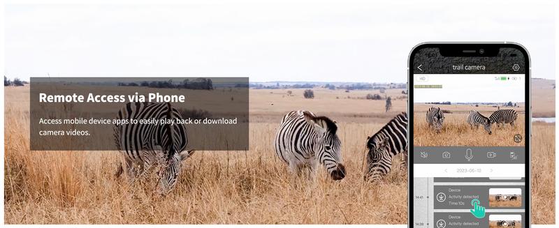 This trail camera cellular allows you to enjoy 2K HD footage of deer, horses, bears and others in real time with the Ucon app. And you can remotely access and set up the trail cam cellular from your phone anytime, anywhere. Most importantly, you are able to communicate and share your experiences with friends & family in real time.