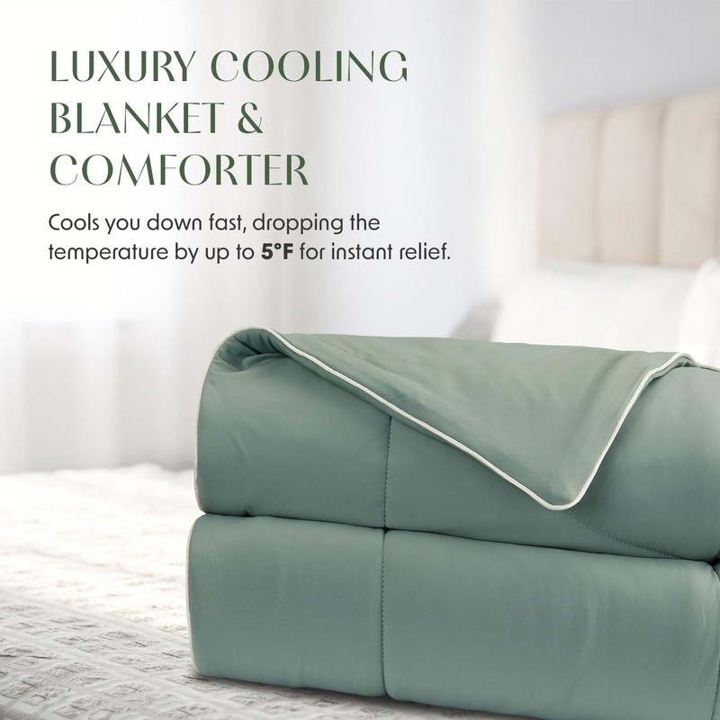 - LUXURY COOLING BLANKET & COMFORTER: Experience year-round comfort with the Luxury Cooling Blanket. Designed with hot sleepers in mind, its oversized 50" x 70" throw offers a breathable, lightweight, and stylish solution for restful, uninterrupted sleep or rest.