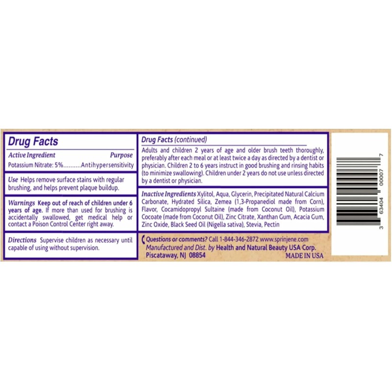 - & : SprinJene toothpastes taste great with natural peppermint oil plus tea tree, pomegranate, and thyme oils to help fight bad breath and whiten teeth. It's perfect for anyone who wants a natural alternative to conventional toothpaste.