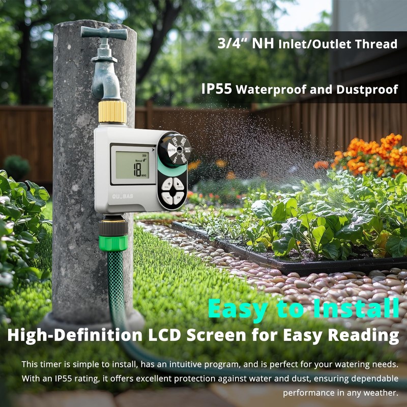 - User-Friendly LCD Screen Display: Navigate your watering schedules effortlessly with the clear digital display. The intuitive design allows for quick adjustments and easy monitoring of your programmed settings, making it perfect for both novice and experienced gardeners seeking efficient lawn care solutions.