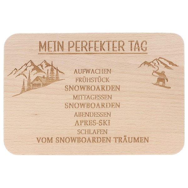 - Snowboard gift: The wooden breakfast board is a fun and personal gift idea for all snowboarders. Thanks to the high-quality engraving "Mein perfekter Tag - Snowboard", the breakfast board is perfect as a gift for birthdays, Christmas or as a small gift for in between.