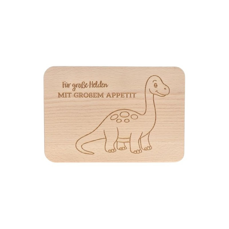 Spruchreif | Frühstücksbrettchen "Für große Helden mit großem Appetit" Brachiosaurus | Brotzeitbrett aus Buchenholz mit Dino-Motiv | Geschenk für Kinder & Dino-Fans | 22 x 15 x 1 cm | nachhaltig