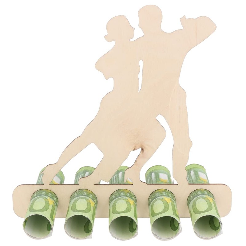 - Original monetary gift: With the beautiful wooden display in the shape of a dancing couple, you can package and gift money or vouchers in a particularly beautiful way. The banknotes or vouchers are rolled up and can be easily inserted into the provided holes. So you can easily package the gift and give it as a present – an absolute eye-catcher.