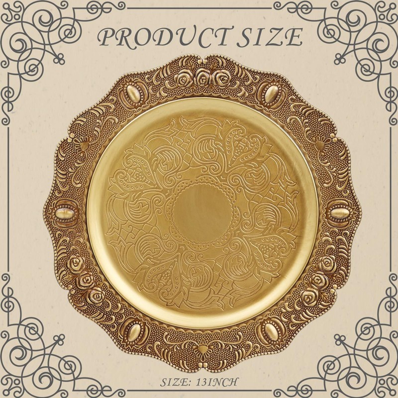 Spsyrine Gold Charger plates, 13 Inch Set of 6 Chargers for dinner plates, Serve ware Plate for Wedding Bulk, Parties, Christmas, Holiday Table Setting, F8G