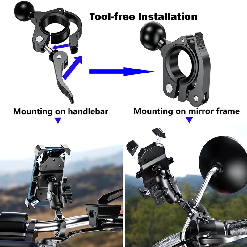 • ➤Diese 1'' Kugellenkerhalterung lenkerhalterung motorrad ist mit Lenkern von 0,5'' bis 1,26'' Durchmesser kompatibel. Werkzeugloses Installationsdesign, hohe Qualität.
