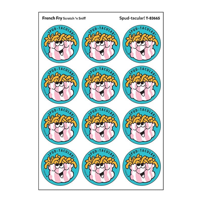 Get a whiff of this Spud-tacular!, french fry-scented sticker! TREND Scratch n Sniff Stinky Stickers from the 80s are BACK! Fun to collect, trade, and celebrate accomplishments and special occasions. Collectors will be happy to spot the star symbol to distinguish TREND Retro Stinky Stickers from those printed in the 1980s.
