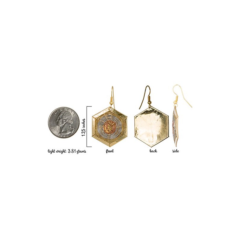 - Lightweight hand-made hexagon basket weave earrings make a beautiful artisan boutique statement: they are both modern and tribal, simple and complex, 3 tones mean it goes with everything... Copper, silver & gold. Each one is formed by hand, so the inside is unique. When you purchase one of these designs, you are purchasing your own unique piece of wearable art.