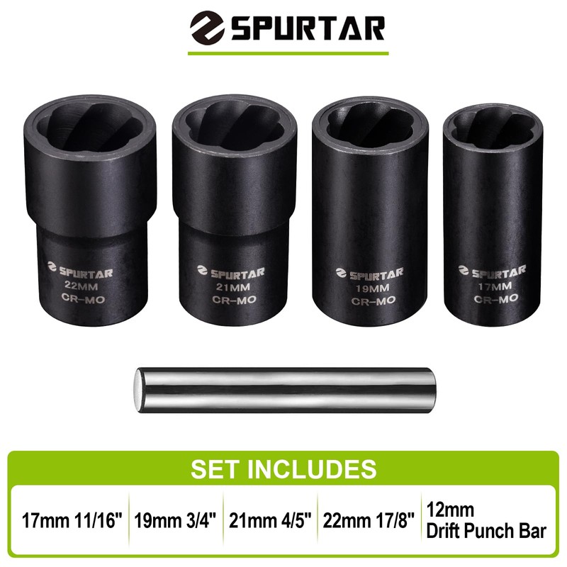 ★ Perfect Size - 17MM,19MM, 21MM, 22MM Spurtar lightweight bolt extractors feature 4 different socket sizes