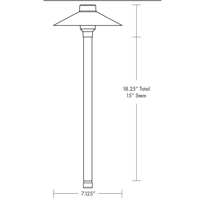 The Black Diamond Path Light comes with a G4 Ecostar lamp (3W 2700K Omni-directional 240 Lumens) to be installed. Simply install the lamp and screw on the Black Diamond Path Light top. The threaded top design allows the top to stay straight on the fixture, and also includes a white reflective surface underneath. The spun brass construction features a baked enamel finish. Overall height is 18.25"