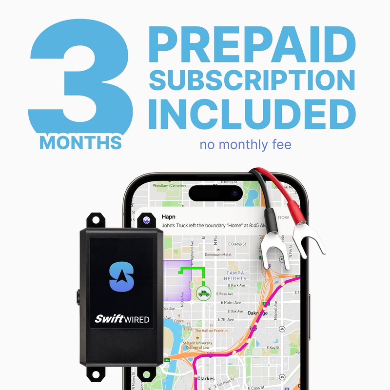 - SUBSCRIPTION INCLUDED: Our Swift Wired GPS tracker includes a 3 month subscription to our easy-to-use mobile and desktop apps. Simply activate the device and start tracking!