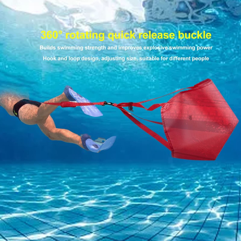 - Aerodynamic: the swimming resistance parachute mimics aerodynamics and achieves relative resistance when moving through the water to improve training results.