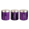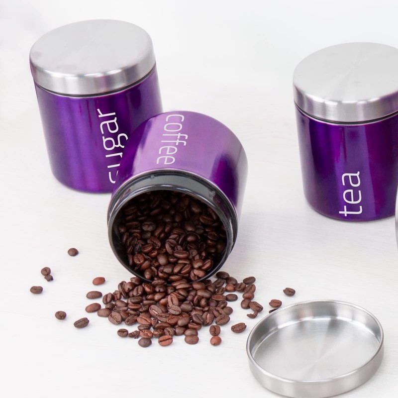 SQ Professional Stainless Steel Tea Coffee Sugar Canisters Sets of 3 Tea Caddy Sets for the Kitchen Storage Pots Jars Tea and Sugar Containers Purple (Amethyst)