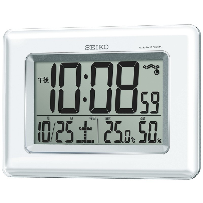 セイコー クロック 掛け時計 置き時計 兼用 電波 デジタル カレンダー 温度 湿度 表示 白 パール SQ424W SEIKO