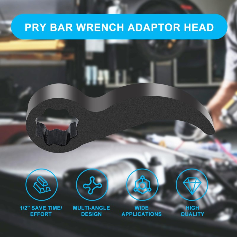 - Pry Bar Wrench Adaptor: Designed to fit any 1/2-inch drive ratchet or breaker bar. Includes 2 adapter heads for versatile tool combinations
