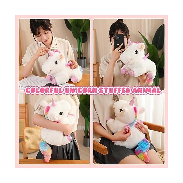 SQEQE Cute Unicorn Stuffed Animals with 4 Babies in Her Tummy, Rainbow Flying Unicorn Plush Pillow Toys with Wings, Gifts for Girls Ages 3 4 5 6 7 8 Years