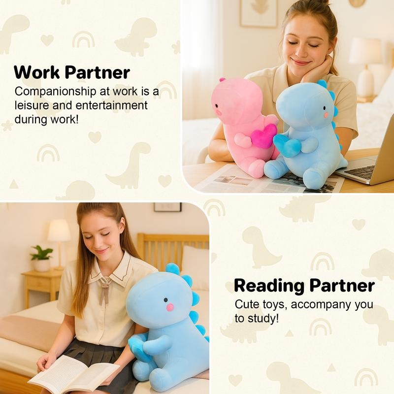 SQEQE Dinosaur Plush Toy withHolding Heart Design,Sweet Cartoon Animal Stuffed Toy,Romantic Birthday Gift,Home Bed Sofa Decorations dealsforyoudays:_Pink_15inch