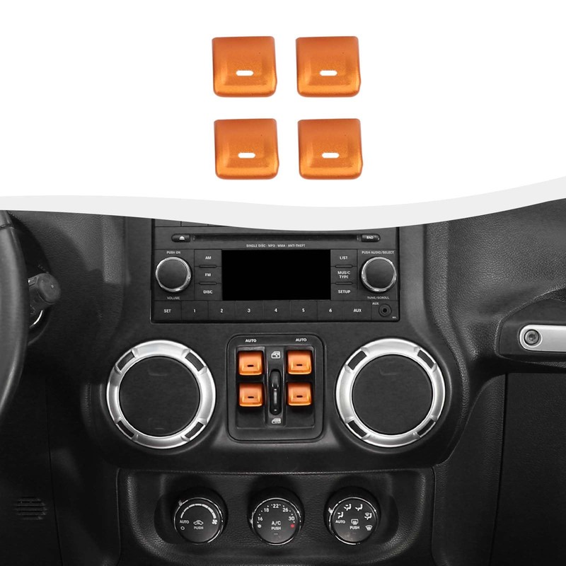 SQQP for JK Aluminium Center Console Window Switch Button Cover Compatible with 2012-2017 Jeep Wrangler JK JKU(Orange)