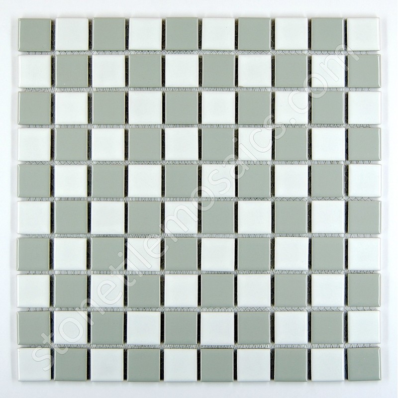 Square Checkered Tile Grey & White Porcelain Mosaic Shiny Look 1-1/8" X 1-1/8"