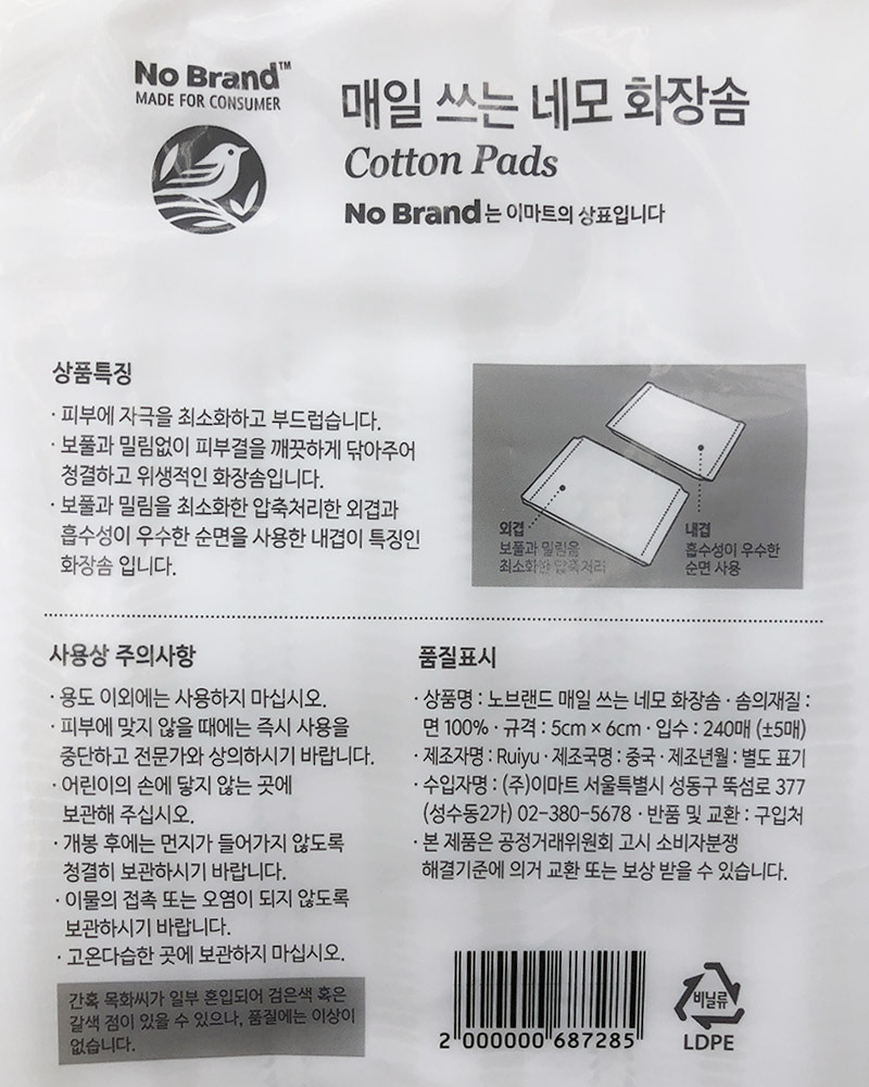 ![]() ![]() 매일쓰는 네모화장솜 240매 x 3개