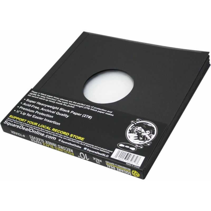 Square Deal Recordings & Supplies (250) 10" Black Polylined Record Inner Sleeves HEAVYWEIGHT Paper ARCHIVAL