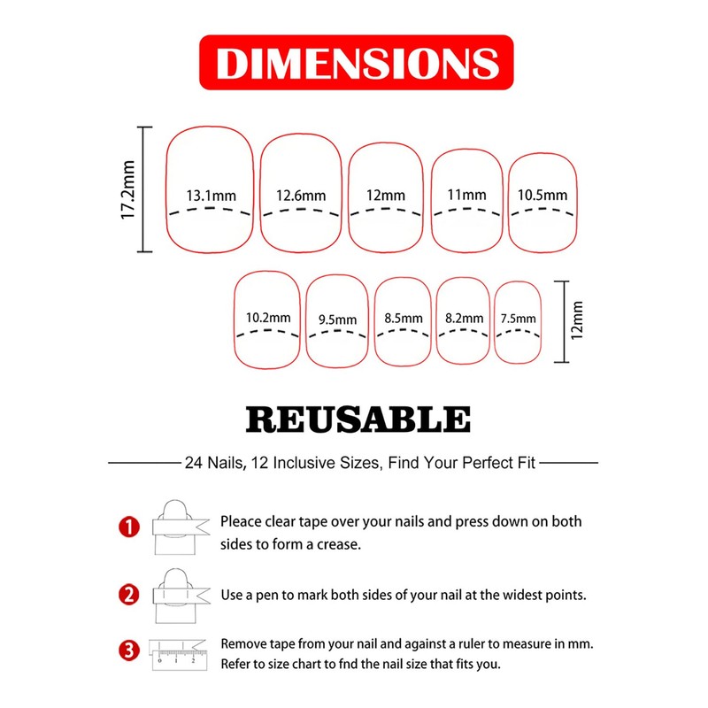 • Eco-Friendly:This acrylic fake nail is made of high-quality ABS material, non-toxic and odorless, you can rest assured that it will not cause harm to your body, providing you with a safe and comfortable nail experience.