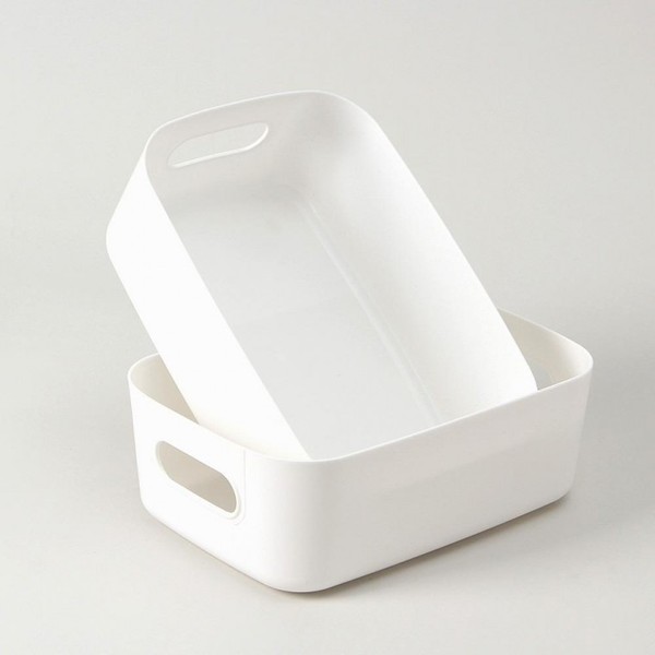 Square handle storage basket 2 piece set (14x20.5cm) (white) 3ea