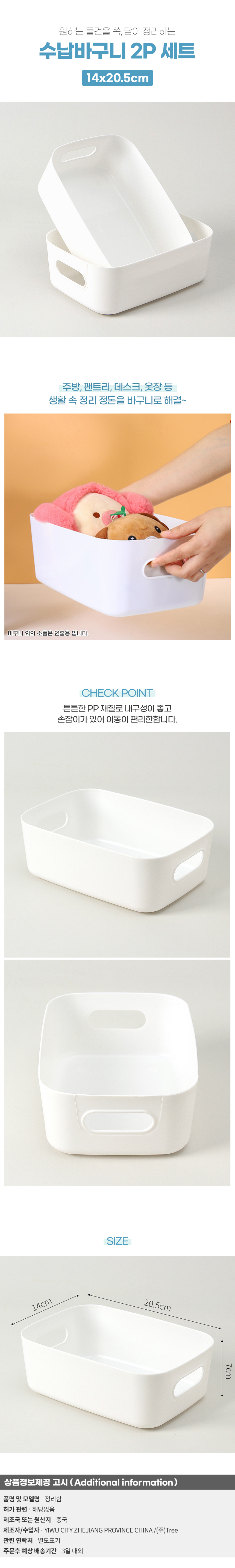 Square handle storage basket 2 piece set (14x20.5cm) (white) 44ea