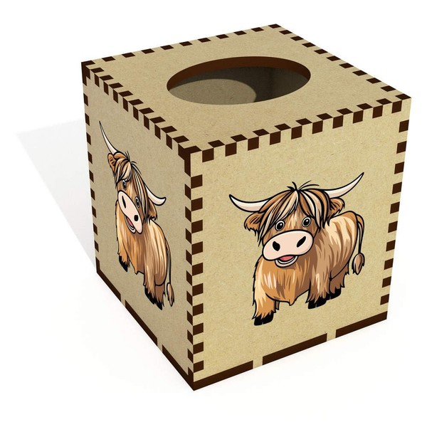 Square 'Happy Highland Cow' Wooden Tissue Box Cover (TB00062061)