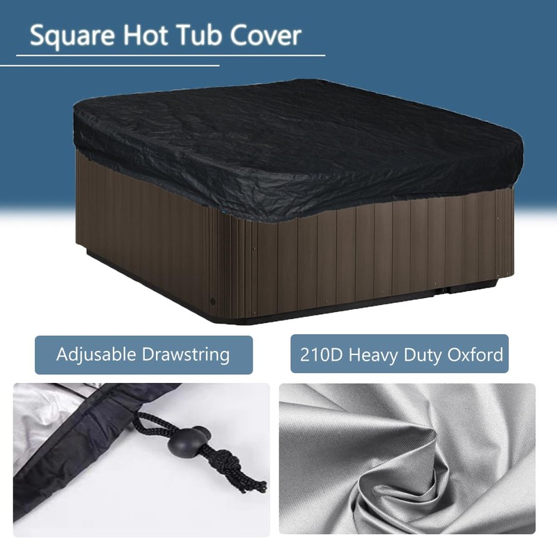 - Heavy duty waterproof square hot tub cover protection from dust, dirt, snow, rain, sun: Made of durable 210D oxford fabric, prevents tearing, fading.