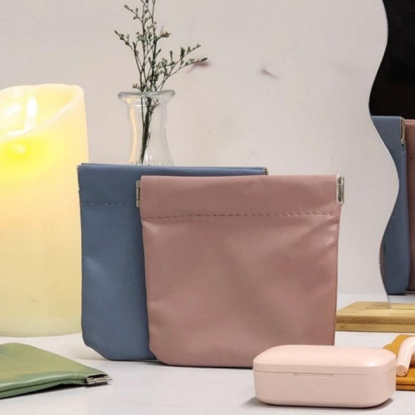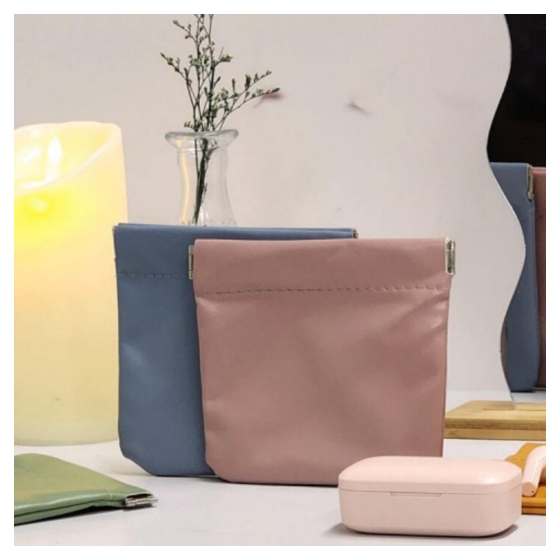 Square Mini One-Touch Pouch for Wired Earphones & Small Items - Auto-Close Wallet S 5ea