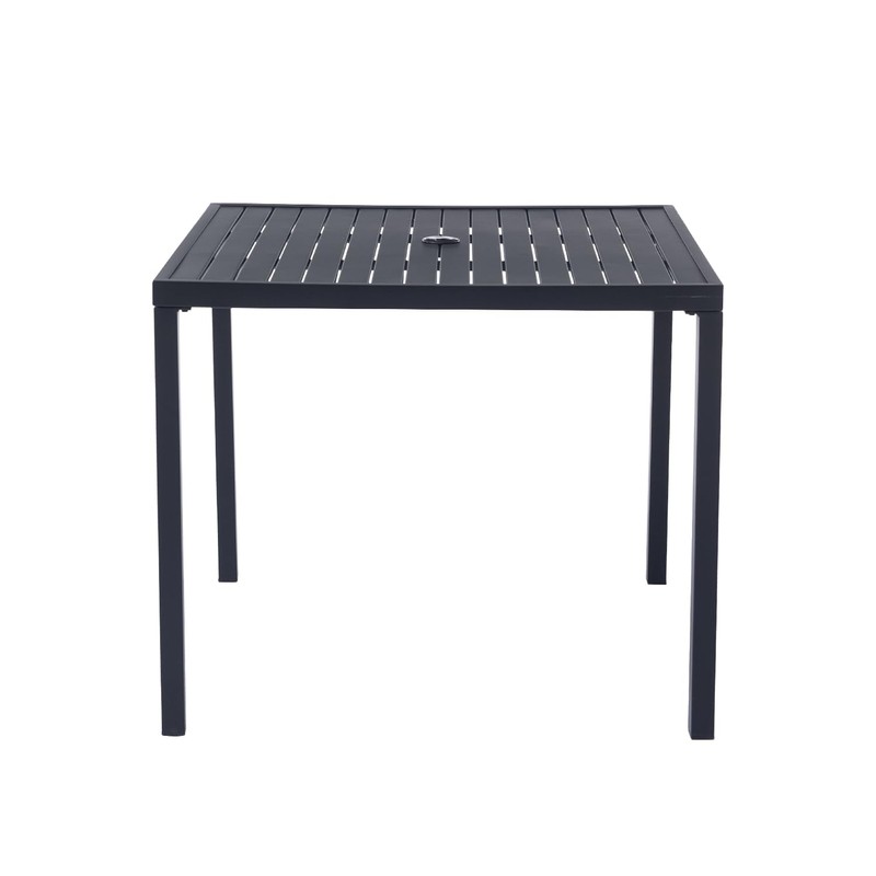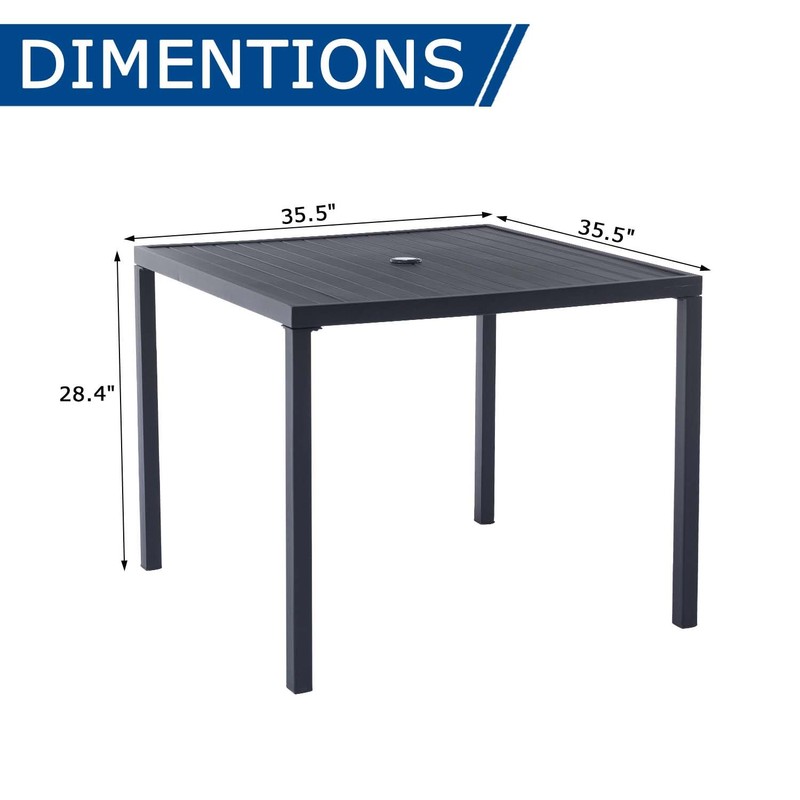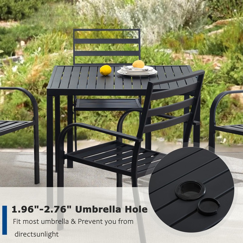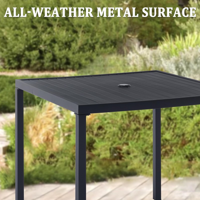 Square Outdoor Dining Table for 4, Metal Patio Dining Table with Umbrella Hole for Garden, Backyard and Deck, Black
