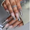 Square Press On Nails Long Fake Nails Rhinestone Heart With Silver Pattern Design Acrylic False Nails Glossy Glue On Nails Artificial Nails Full Cover Stick On Nails For Women 24pcs