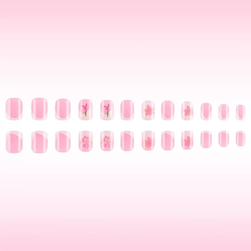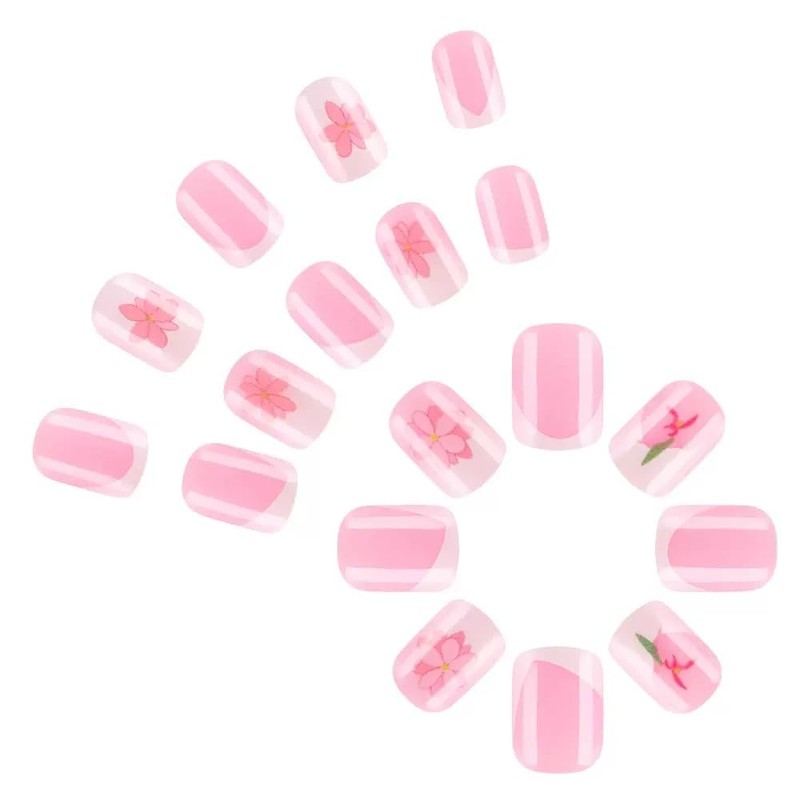 - Package Contains: You will get 24pcs pink press on nails, 1pcs nail file, 24pcs jelly glue sticker, 1pcs wooden stick for removing false nails. Jelly glue is not as durable as liquid glue, but it makes flower press on nails reusable. Please use suitable glue according to different scenes