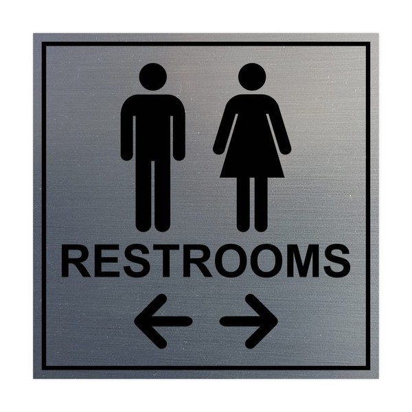 Square Restrooms Left and Right Arrow Sign (Brushed Silver) - Large