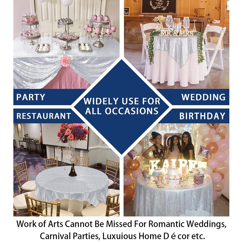 - Sizes: 1 pc 50x50-Inch square silver sparkly handmade sequin tablecloth and square tablecloth.