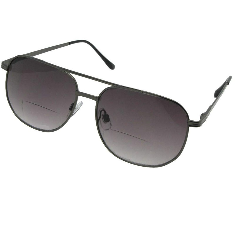 Square Shape Bifocal Sunglasses B14 (Pewter Frame Gray Lenses, 2.50)