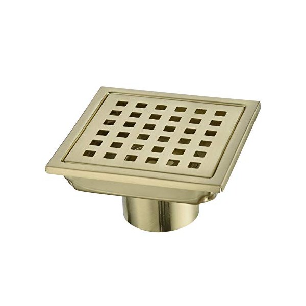 Square Shower Drain 4 inch, Nicmondo SUS 304 Stainless Steel Point Center Floor Waste Drain with Removable Grate Cover, 11cm x 11cm, Brushed Gold