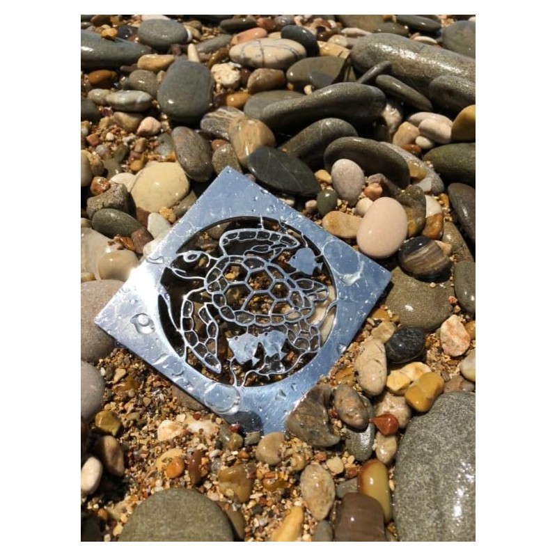 Square Shower Drain Cover Replacement for Ebbe E4400 (Polished Stainless), Sea Turtle Designer Drains