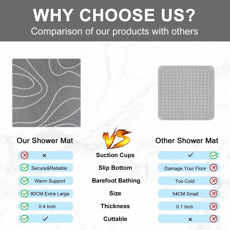 - COMFORT SHOWER: Our square shower mat are 0.4 inch thick to provide soft support for your feet, cutting the cold hard floor off from your body; Also can massages if you rub your foot lightly back and forth, scrape dead skin away from your feet