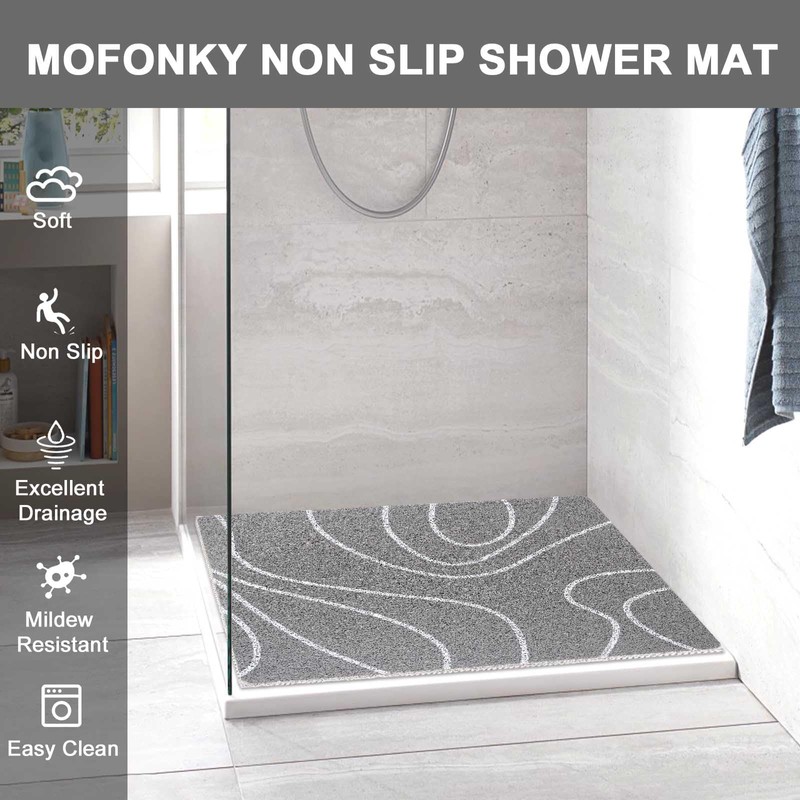 - SIZE AND PATTERN: This large shower mat measures 32 x 32 inch, provides excellent coverage, can be satisfied of most stand up shower stall; Classic gray, match exclusive line designs, adds a sleek, modern look, means it should blend in with existing decor