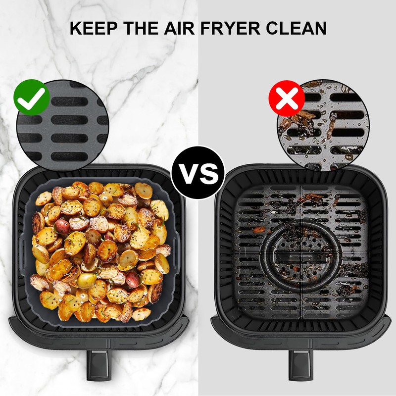 - Easy to Clean: Effectively protects the air fryer from food residue and grease buildup, and is fully dishwasher-safe, eliminating the hassle of hand washing. Say goodbye to sticking and burnt residue, making cleaning a breeze.