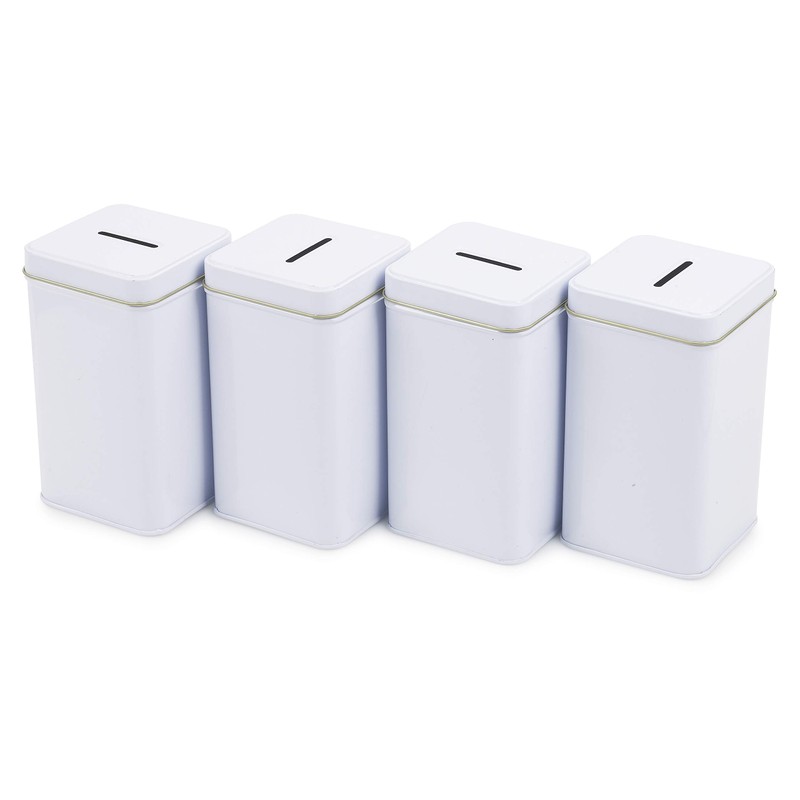 Metal Tin Charity Donation Box Tip Container Coin Collection Ticket Box Square shaped 5" H x 3" W x 3" D with slot on removable cover (10 Pack) White