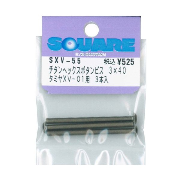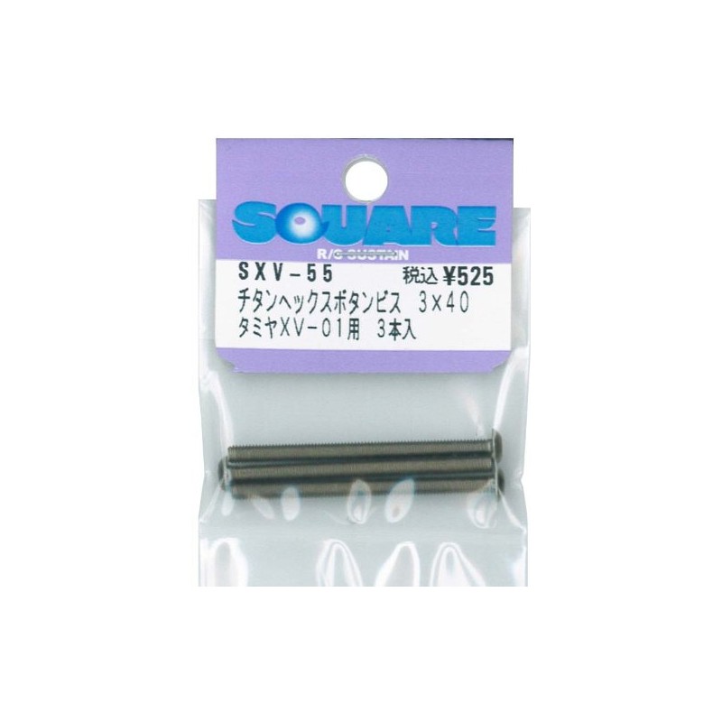 Square Titanium Hex Button Screws 3 x 40 (For Tamiya XV-01), Pack of 3