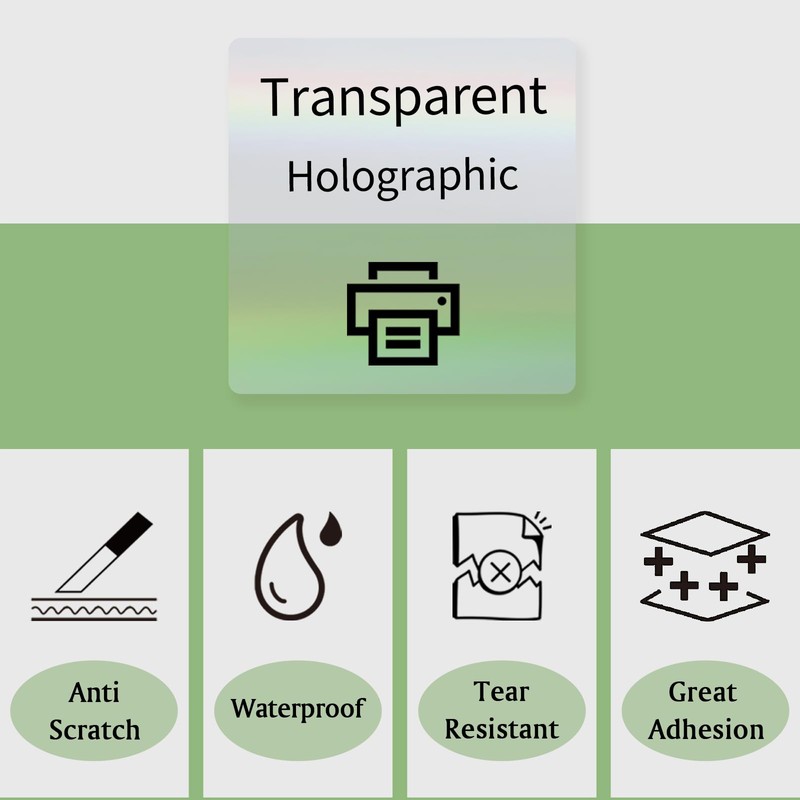- Transparent Holographic Thermal Label, The color of the surface of the sticker can be changed under the light with the move, which is beautiful and charming