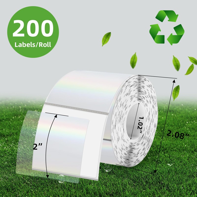 - Package: 2'' x 2'' Square Transparent Thermal Stickers- 200 Labels/Roll. It’s printable with a thermal printer, No ink toner or ribbons are needed