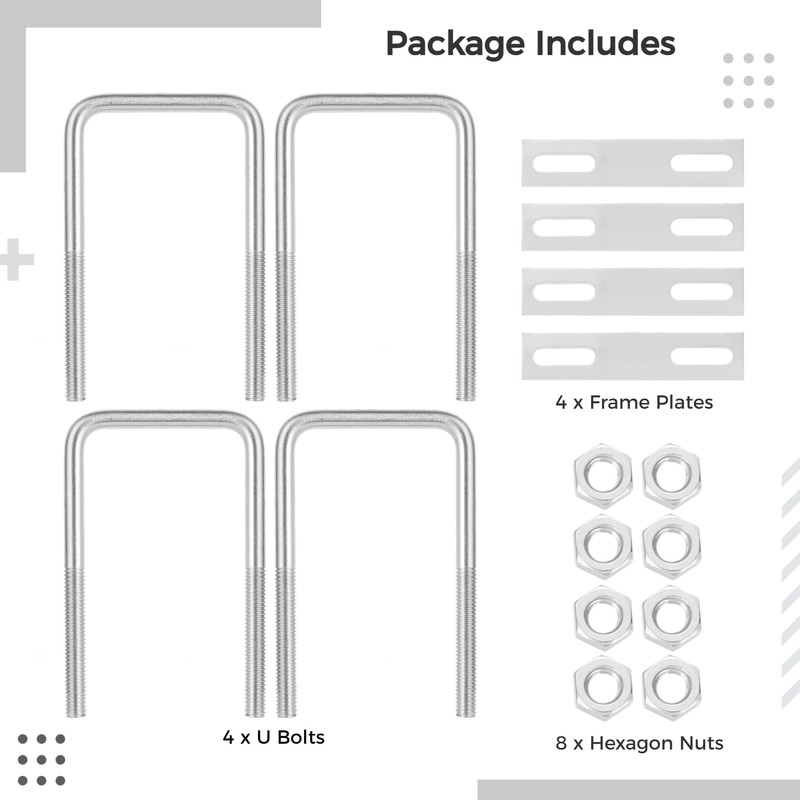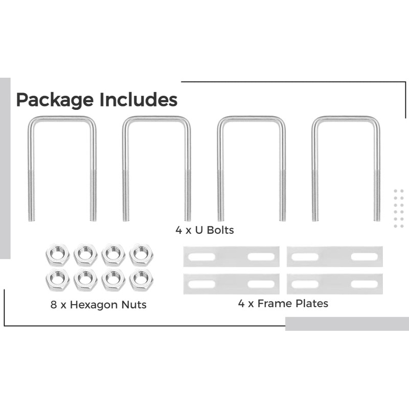 - 【4 Square U-Bolt Kits】4 U-bolts, 8 hexagon nuts, 4 plates, these additional accessories are galvanized as well. You can spend less time doing your work with these handy tools!