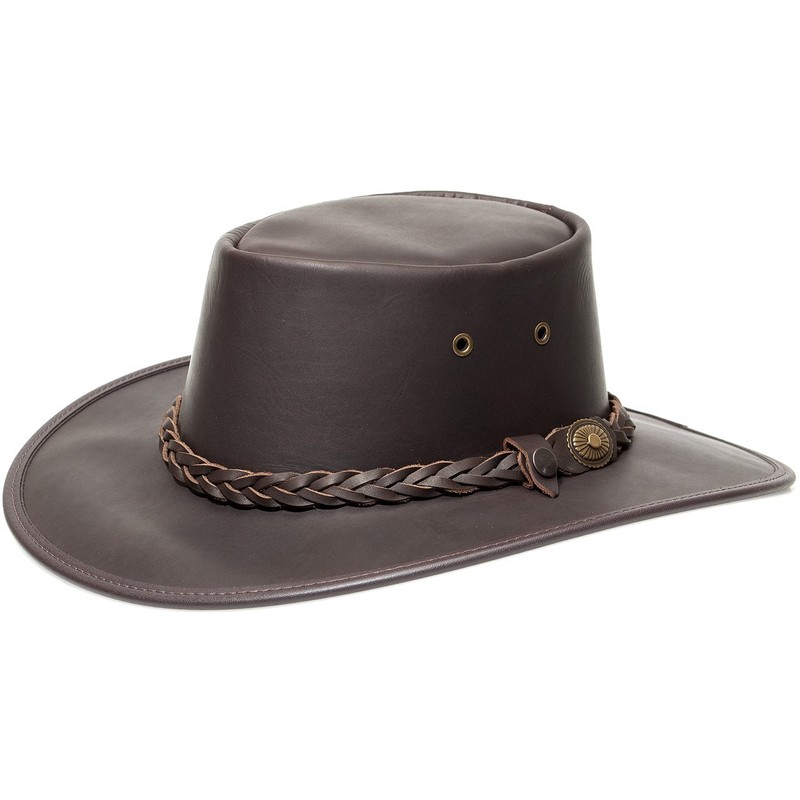 Barmah Style 1026 Outback. Typical 'Aussie' style leather hat, made in Melbourne / Australia. Genuine 'Full Grain' cowhide leather. The sewn-in 'Softie' sweatband and the large ventilation eyelets offer the highest level of comfort. Removable leather hat strap. All-weather and tropical-friendly. UV protection 50+. Take this hat with you on the trip, or wear it while walking your dog. The squashy is 'crushable' - it can be crushed and takes up hardly any space in your backpack or luggage. The brim measures 6 - 7 cm and the height approx. 10cm