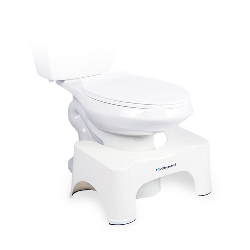 Squatty Potty® is a carefully designed toilet stool that puts YOU in exactly the correct position for fast, easy elimination, and keeps ITSELF out of the way when not in use.